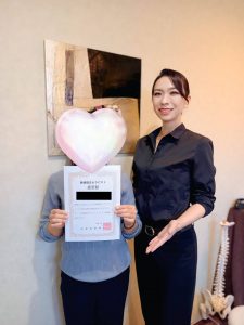 先日、当店で小顔矯正術の講座を受けられた方が試験も合格し、