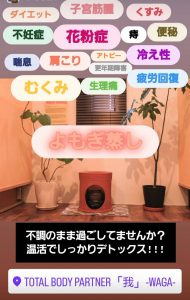 そんな不調を感じている方にこそ、よもぎ蒸しはおすすめです(*^▽^*)